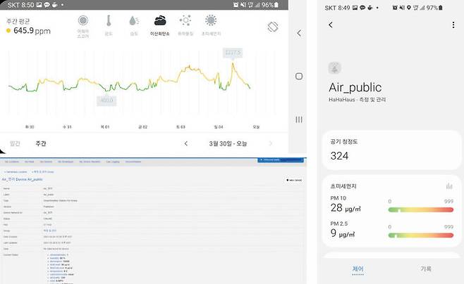 집 안은 거주자 활동이나 조리, 외부 미세먼지 유입 등에 의해 수시로 변하기 때문에 실내 환경에 따라 적절하게 환기해야 한다. 하하하집은 각종 센서와 조절기기가 실내외 상황에 맞춰 집 안을 늘 일정하게 쾌적한 상태를 유지한다.