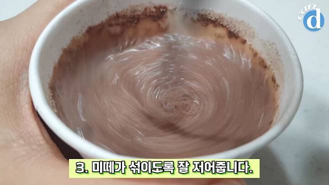 미떼를 우유에 넣어 고루 저어주세요.