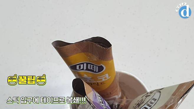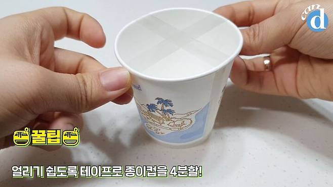 종이컵을 테이프로 4분할해주면 미떼 스틱이 쏙!