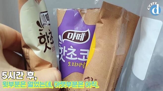윗부분만 얼고 아랫부분은 그대로.