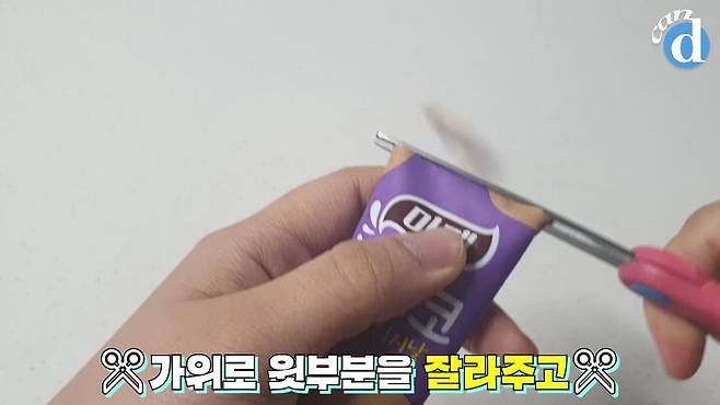 윗부분을 가위로 잘라 아래서부터 꾸욱 눌러주면 쏘옥!