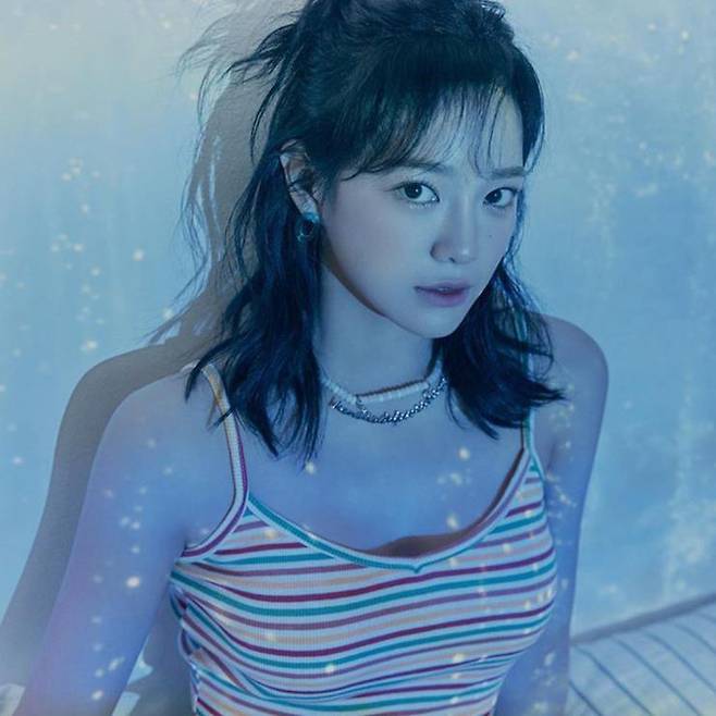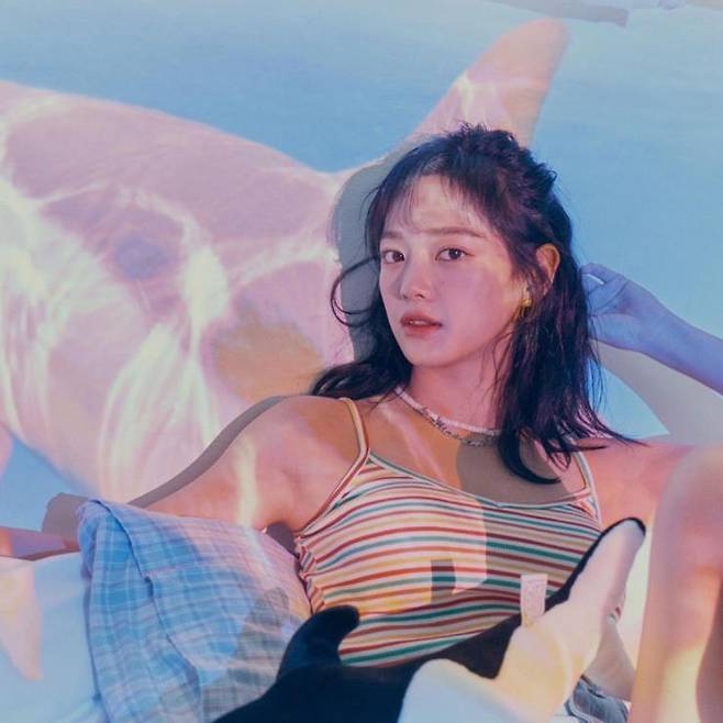 17일, 디지털 싱글을 발표한 구구단 멤버 세정. 신곡 'Whale (웨일)'의 티저 이미지에서 레인보우 슬리브리스를 입고 물속에 있는 듯한 느낌을 주어 눈길을 끈다. 레터링 액세서리와 비즈 목걸이, 언밸런스 이어링을 함께 매치해 청량한 서머 스타일을 완성했다.