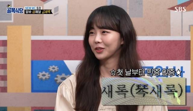 이날 방송에서는 금새록이 새 MC로 첫등장했다. 김성주는 “금새록은 본명입니까?”라고 질문했고, 금새록은 “네, 새록새록”이라고 답했다.