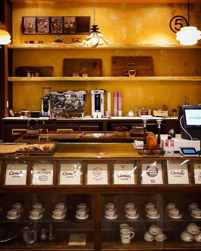 성수동 핫플레이스 카멜 커피. 크림과 에스프레소 조합의 시그니처 커피가 유명한 커피 맛집으로 고소한 앙버터도 잊어선 안 된다.