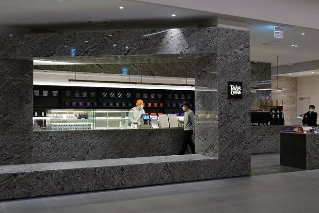연남동의 커피 명가 테일러 커피. 얼음을 넣지 않고 차갑게 만든 컵에 내어주는 ‘블루지'가 시그니처 메뉴. 모던한 인테리어가 돋보인다.