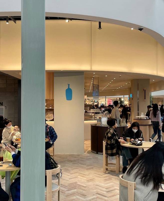 스페셜티 커피의 대명사 블루보틀의 국내 정식 백화점 최초 입점매장으로 뻥 뚫린 천장으로 들어오는 햇살을 받으며 커피를 마실 수 있어 좋다. 사악한 웨이팅이 유일한 단점.