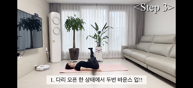 1. 다리 오픈 한 상태에서 두번 바운스 업!!