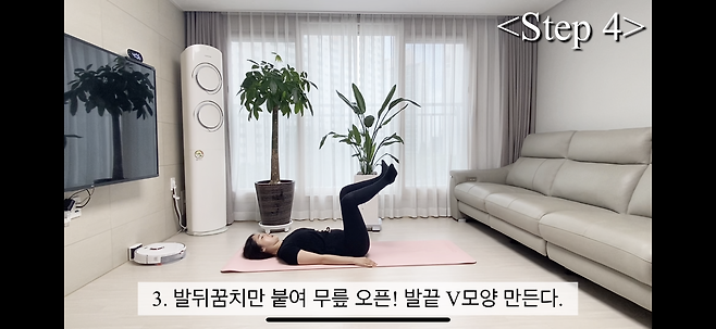 6. 다리가 펴지지 않는다면 테이블탑 상태로 무릎 구부려서 진행한다.
