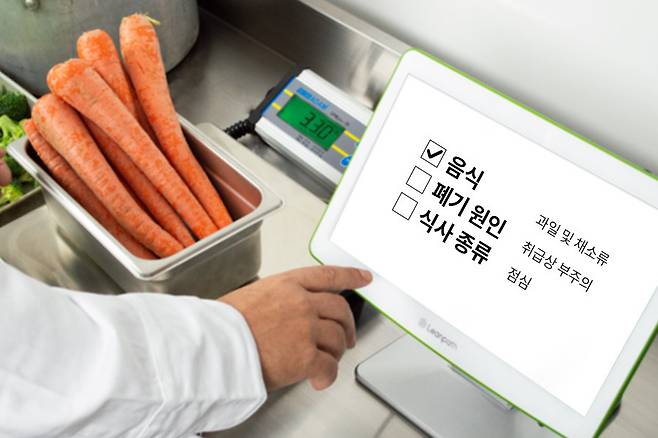 또 조금 더 새로운 방식을 도입하기도 했는데요. '린패스'라는 스타트업과 협업해, 스마트 저울로 음식물 쓰레기 배출 현황을 분석하는 겁니다. 과정을 한 번 살펴볼까요? 스마트 저울에 버려지게 될 음식을 올려놓으면 내장 카메라가 사진을 찍고, 주방의 직원들이 터치패드 스크린을 통해 추가 정보를 입력합니다. 취급상 부주의로 식재료가 변질됐거나, 손상된 경우 등 각종 정보가 입력되면 버려지는 음식이 미치는 영향을 숫자로 환산하는데요.