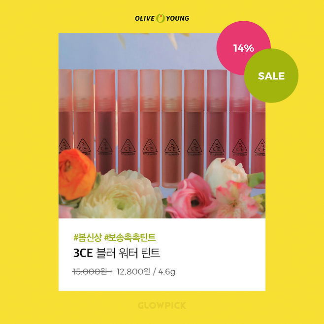 ** 3CE 블러 워터 틴트 15,000원 -> 12,800원(14% 할인) **