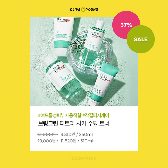 ** 브링그린 티트리 시카 수딩 토너 13,000원 -> 9,810원 (37%SALE) **