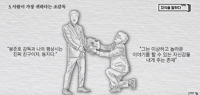 향기가 좋은 꽃은 많은 벌들이 모이기 마련입니다. 그중에서도 봉준호라는 꽃은 배려와 소통, 존중 등 아름다운 인성의 향기를 갖고 있죠. 그렇기에 ‘봉준호’라는 사람 그 자체만으로도 장르가 될 수 있고 또한 매력이 있어 많은 사람들을 이끌어 나갈 수 있는 것 아닐까요?