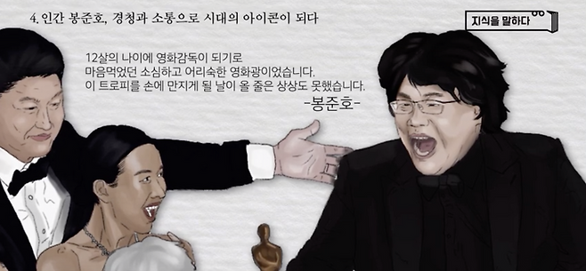 세상에 혼자 이루어 낼 수 있는 성공은 극히 드물죠. 많은 사람의 도움과 더불어 같이 성장해나가는 가치를 아는 감독, 봉준호 그의 수상이 더욱 빛나는 이유 중 하나일 겁니다.