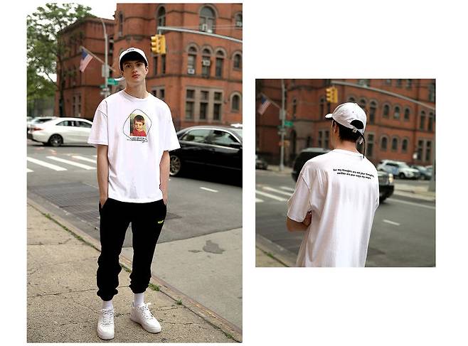 뉴욕 모델들은 다양한 그래픽 티셔츠를