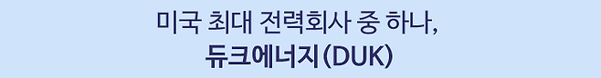 듀크 에너지(DUK)는 미국 최대 전력 지주회사로 우리나라의 한국전력과 유사한 기업이라고 생각하면 되지만 그 규모는 훨씬 크고 안정적이다.