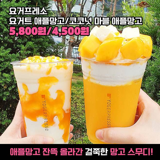 그저께 날이 너무 더워서 들른 요거프레소 카페에 애플망고 음료가 눈에 띄길래 동남아 여행도 생각나고 찐 여름맞이도 할 겸~ 급번개 같은 리뷰 들고 왔어요!