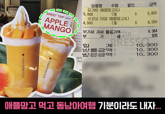 그저께 날이 너무 더워서 들른 요거프레소 카페에 애플망고 음료가 눈에 띄길래 동남아 여행도 생각나고 찐 여름맞이도 할 겸~ 급번개 같은 리뷰 들고 왔어요!