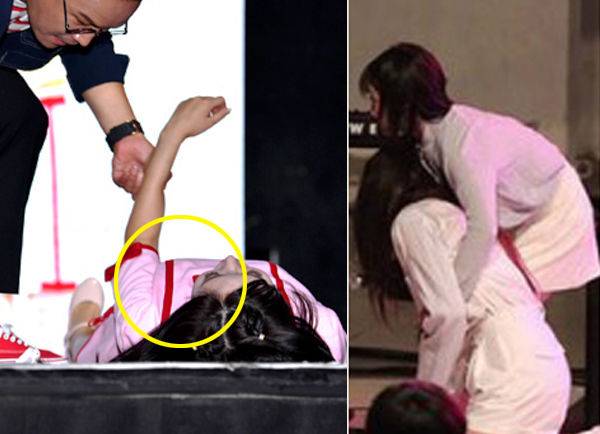 '섬씽'이라는 곡으로 활동하고 있던 걸스데이의 멤버 혜리도 생방송 공연 중에 갑자기 실신해 스태프에게 업혀나간 적이 있습니다. 소속사 측은, '감기 몸살에 힘들어하고 있던 혜리가 스케줄을 무리하게 소화하다 생긴 일'이라고 설명했습니다.