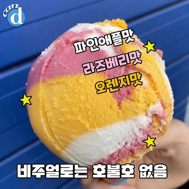 파인애플맛, 오렌지맛, 라즈베리맛이 한데 어우러졌어요.