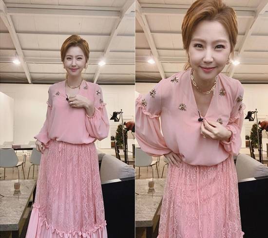 이윤미가 분홍 드레스로 러블리함을 뽐냈다.