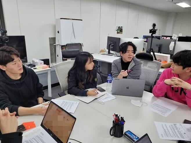 사진= 왼쪽부터 정진성 프로듀서(칼), 조미서 프로듀서(조디), 이영민 콘텐츠 총괄(케빈), 박기범 부대표(코난)다.