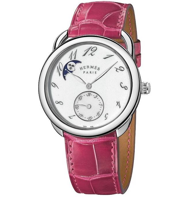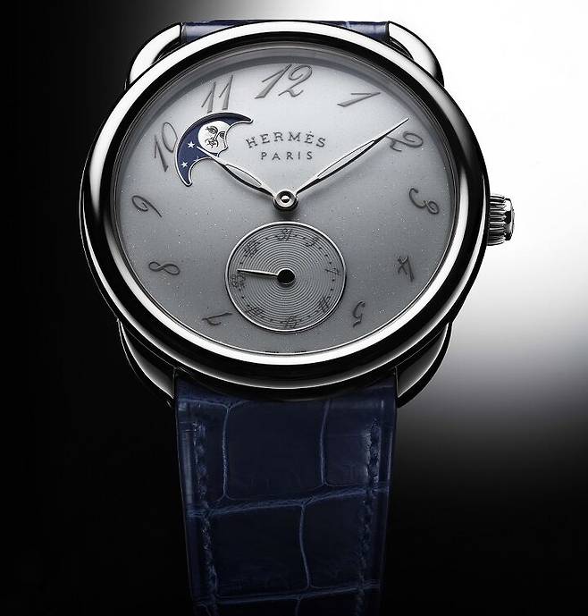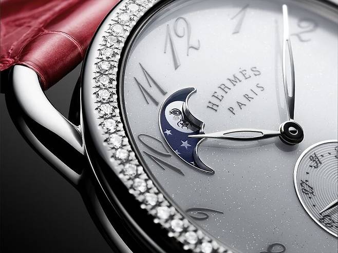 에르메스는 지난 2013년 아쏘 컬렉션 35주년을 기념하며 문페이즈 컴플리케이션을 앞세운 아쏘 쁘띠 룬을 런칭해 큰 성공을 거둔 바 있습니다. 마구인 등자(鐙子, Stirrup)에서 영감을 얻어 수석 디자이너 앙리 도리니(Henri d’Origny)의 손끝에서 탄생한 아쏘 컬렉션의 시그니처 케이스 디자인(우아한 원형의 케이스와 결합한 비대칭 러그 형태)을 이어가면서 화이트 혹은 블랙의 마더오브펄 다이얼 10~11시 방향 사이에 비스듬히 문페이즈 디스플레이를 위치시키고 6시 방향에는 포인터 핸드 타입으로 날짜를 표시하는 특유의 아기자기한 기능 배열이 돋보였습니다.