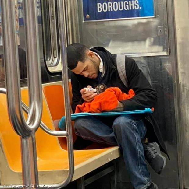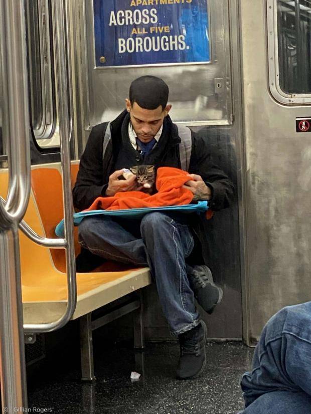 질리언 로저스는 뉴욕에서 지하철을 타고 집에 돌아가던 중이었다. 그런데 한 남성이 그녀의 눈길을 사로잡았다. 태어난 지 얼마 안 된 새끼고양이를 수건으로 감싸서 품에 안고 있었기 때문이다.