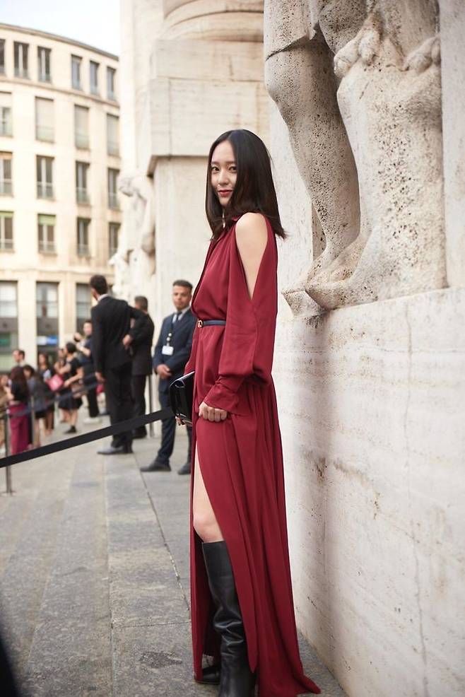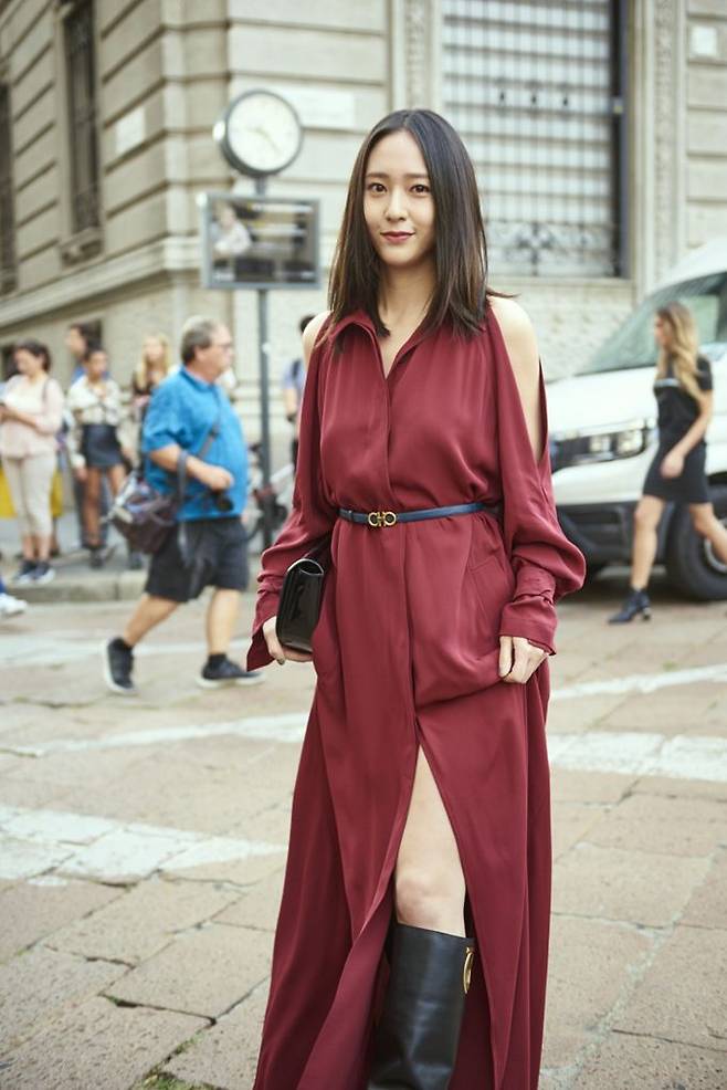 지난 9월 22일 밀라노의 '살바토레 페라가모' 2019 봄/여름 컬렉션에 한국 대표로 참석한 크리스탈은 레드 컬러의 맥시 드레스룩으로 우아하면서도 화려한 자태를 뽐냈다.