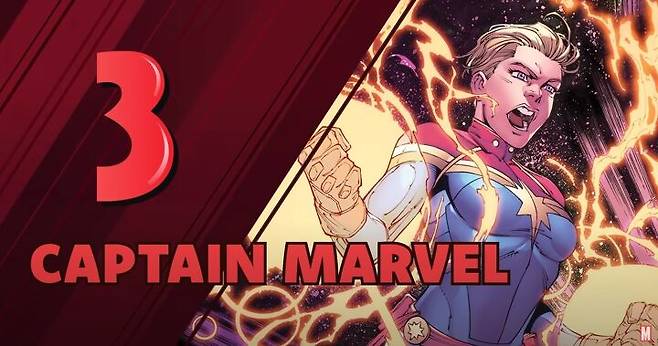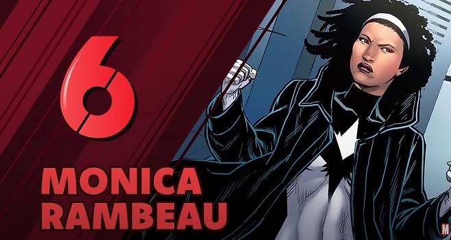 코믹스에서 캡틴 마블과 특별한 관계를 가졌던 모니카 램보는 어벤져스 멤버로 활동했을 뿐만 아니라 때로는 그들을 이끄는 리더로 뛰어난 재능을 보여준 바 있습니다. 이에 블루 마블과 함께 최근의 어벤져스 멤버 중 가장 강력한 슈퍼 히어로로 평가받고 있습니다. 마블은 이런 강력한 능력을 이유로 그녀를 6위로 선정했습니다.