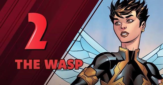 이후 그녀가 다른 차원에 살아 있다는 사실이 알려지고 어벤져스가 그녀를 구출하기도 하나 지금은 행크 핌의 딸인 나디아가 그녀를 대신해 2대 와스프로 활동하고 있는 상황입니다. 원년 멤버이자 리더였고 ‘어벤져스’라는 팀명까지 아이디어 냈던 그녀. 2위는 당연한 일일지도 모릅니다.