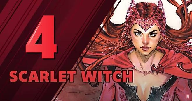그런 그녀가 어벤져스 멤버가 된 것은 어쩌면 너무나 당연한 사실일지 모릅니다. 다만 그녀는 항상 멘탈적인 문제가 있어 자신의 능력 때문에 여타 슈퍼 히어로들에게 본의 아닌 피해를 입히는 경우가 종종 있습니다. 이런 점이 아쉽긴 하지만 마블은 이러한 무시무시한 능력 때문에 스칼렛 위치를 4위에 올렸다고 밝혔습니다.