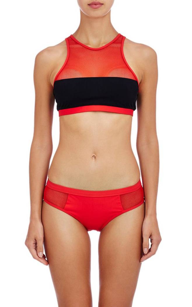 레이스와 가벼운 시폰 소재는 스타일링이 다소 까다롭기 때문에 최신 시스루 트렌드에 어울리는 적합한 란제리를 찾는 것이 중요하다. 메시 티를 입을 경우 대조적인 컬러의 스포츠 브라, 누드 브라렛, 혹은 상의 컬러 톤과 매치한다.