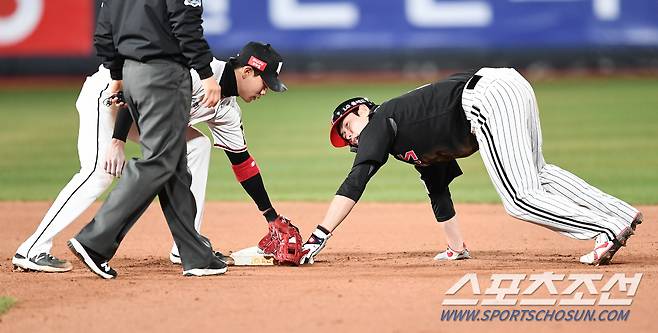 2021 KBO리그 KT 위즈와 LG 트윈스의 경기가 7일 수원KT위즈파크에서 열렸다. 5회초 1사 1루 LG 홍창기가 2루를 훔치고 있다. 수원=박재만 기자 pjm@sportschosun.com/2021.04.07/