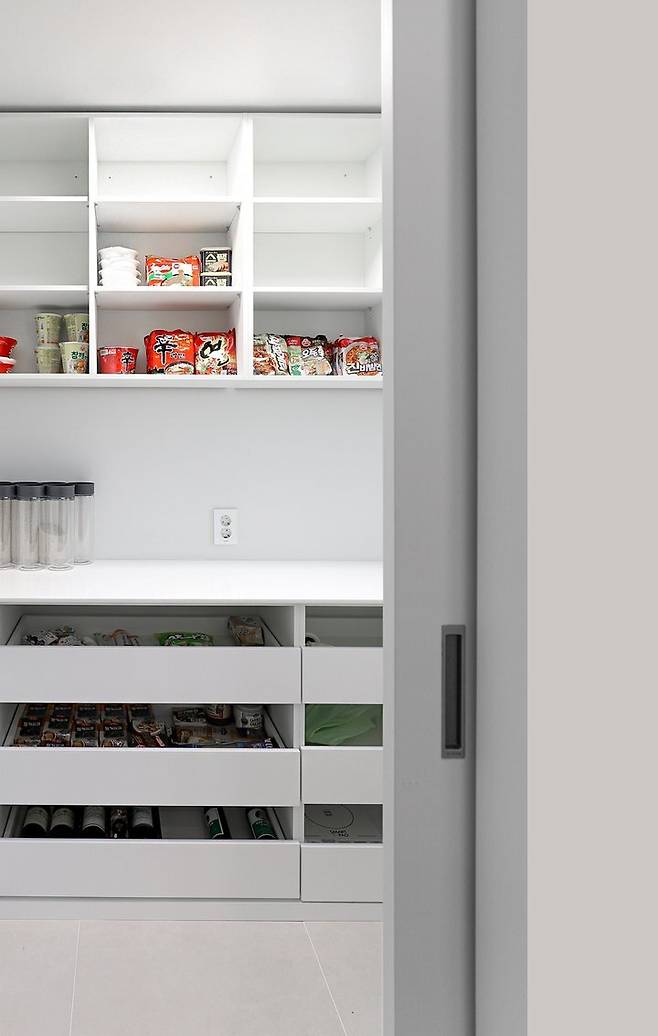 그야말로 "신반한 정리"와 깔끔함을 제대로 누릴 수 있게 해주는 펜트리입니다.