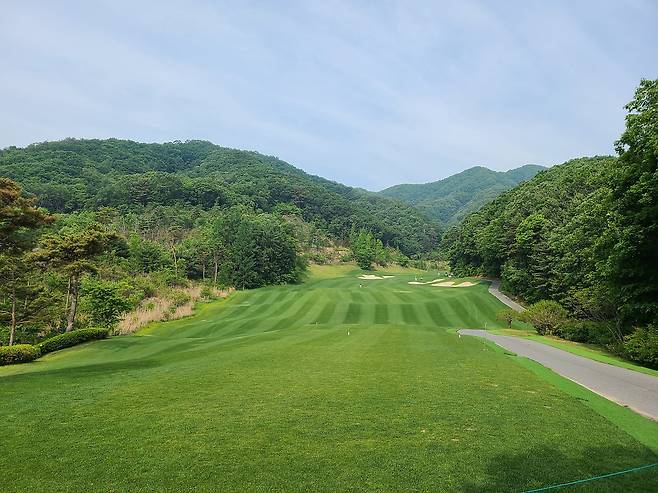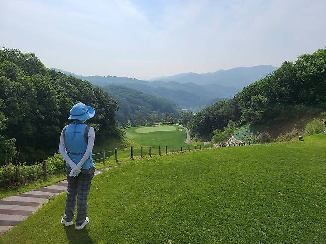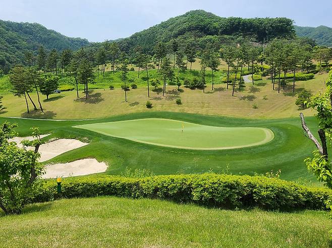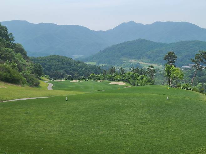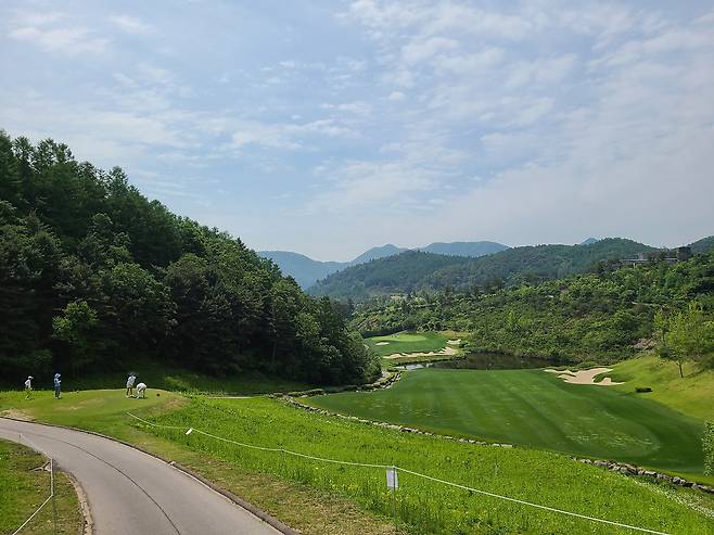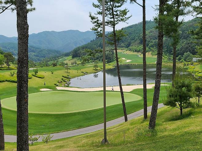 아름다운 숲과 낮은 산으로 둘러싸인 코스. 포근한 느낌이 인상적이었네요.