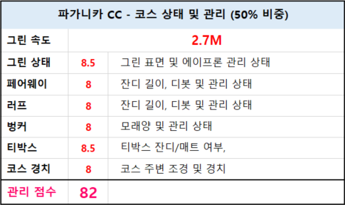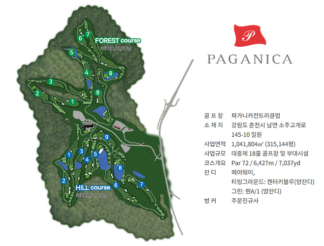 강원도 춘천에 위치한 파가니카 CC는 생각했던 것보다 관리 상태와 재미가 더한 코스였습니다. 힐/포레스트 코스로 총 18홀이며, 다양한 샷 환경과 중급자 이상의 실력자에게 좋은 코스입니다.