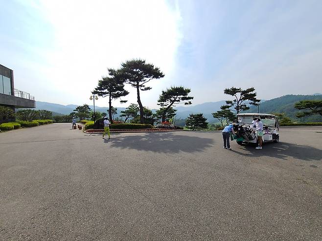 클럽하우스 뒤편에는 코스를 바라볼 수 있는 포토존도 있습니다. 단, 외부에 앉아있을 곳은 없네요.