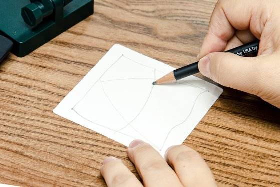 단순한 무늬로만 보였던 젠탱글에 이토록 깊은 철학이 담겨 있다니 놀라웠죠. 박 선생님의 설명에 두 사람은 “빨리 젠탱글을 그려보고 싶다”며 열의를 보였어요. 면 소재의 질 좋은 종이(타일), 연필, 펜, 찰필만 있으면 젠탱글 그릴 준비 완료입니다. 우선 네 모서리에서 0.5~1㎝ 떨어진 위치에 자신만 알아볼 수 있을 정도로 연하게 점을 찍어요. 점과 점을 선으로 이을 때는 “직선이 아니어도, 비뚤어져도 괜찮다”고 박 선생님이 조언했죠. 마지막으로 사각형 안에 알파벳 ‘A’ 모양 스트링을 그립니다.