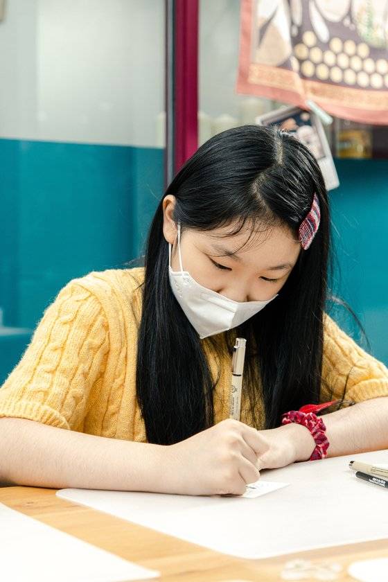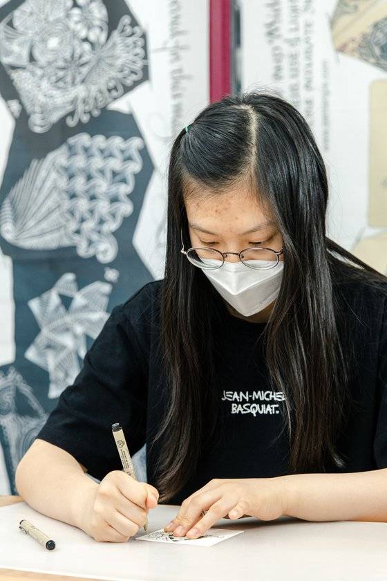 젠탱글을 배우기 전엔 마냥 복잡하고 어려워 보였어요. 하지만 직접 해보니 마음이 평온해지면서 잡념이 사라졌고, 어느새 제 손엔 완성된 작품이 들려있더라고요. 무엇보다 중요한 건 젠탱글을 이루는 선·패턴에는 잘못된 것도 없고 지울 필요도 없다는 거예요. 미술 시간에 잘못된 부분을 지우고 다시 그리는 과정을 반복하곤 했는데, 젠탱글에서는 오히려 ‘실수’가 새로운 패턴의 시작점이 될 수 있다는 게 큰 위로로 다가왔죠. 취재를 마치고 집에 돌아와 오늘 배운 패턴을 바탕으로 젠탱글을 다시 해봤어요. 기대 이상의 작품이 완성돼 기분도 좋고, 성취감까지 느꼈죠. 앞으로 힘든 일이 있을 때마다 젠탱글을 하며 힐링할 수 있을 것 같아요. 황승민(서울 대치중 2) 학생기자