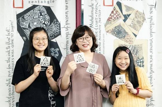 종이에 단순한 패턴을 반복해서 그립니다. 난생처음 그려본 사람도 순식간에 멋진 작품을 만들 수 있고요. 패턴에 몰입하는 과정에서 머리가 맑아지면서 새로운 힘을 얻을 수 있어요. 도대체 뭐냐고요? 바로 젠탱글(Zentangle) 아트입니다. 젠탱글은 집중·몰입·명상을 뜻하는 젠 (Zen)과 복잡하게 엉킨 선·패턴을 뜻하는 탱글(Tangle)의 합성어예요. 반복되는 패턴을 그리며 명상 효과를 얻는 창조 활동이죠. 서울 강남구 아티젠 탱글링캠퍼스에서 만난 박현주 공인젠탱글교사(CZT·Certified Zentangle Teacher)는 젠탱글을 가리켜 “특별한 결과를 기대하거나 계획하지 않고 아름다운 이미지를 만드는 예술 활동”이라고 했어요. 캠퍼스를 가득 채운 젠탱글 작품을 둘러보던 황승민 학생기자·현지용 학생모델이 궁금한 점을 늘어놓았습니다.