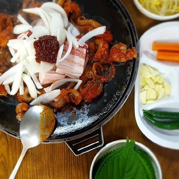 매콤한 양념의 쭈꾸미를 좋아한다면 꼭 방문해봐야 할 맛집이다. 매운 것을 잘 먹지 못해도 맛있게 즐길 수 있는 정도의 양념이니 걱정할 필요는 없다. 메인 메뉴는 쭈꾸미와 삼겹살이 전부이며 사리 종류와 계란찜, 볶음밥이 있다. 오동통한 식감의 쭈꾸미에 잘 어울리는 삼겹살은 꼭 추가해서 먹어야 하는 메뉴다. 콩나물까지 넣어 잘 볶은 삼겹 쭈꾸미에 함께 나오는 날치알을 올려 깻잎 쌈을 싸 먹으면 여러 가지 맛이 입안에서 어우러진다.