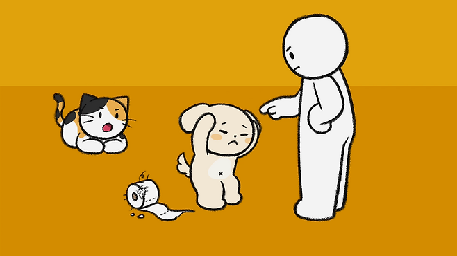 또, 혼낼 때 소리를 지르면 보호자를 무서워할 수 있습니다.