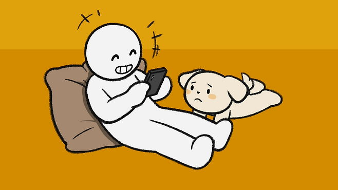보호자가 핸드폰만 하고 강아지와 놀아주지 않는다면