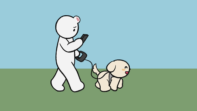 보호자가 핸드폰만 하고 강아지와 놀아주지 않는다면