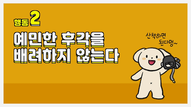 다양한 환경에서 산책할 수 있도록 해줍시다.