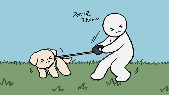 그러니 리드줄을 바짝 매거나 억지로 당기게 되면