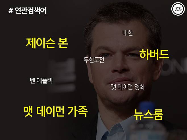 연관검색어에는 신작 ‘제이슨 본’을 비롯해 기자회견과 레드카펫을 진행한 ‘내한’ 행사, 손석희와 만난 ‘뉴스룸’, 아쉽게 출연이 무산된 ‘무한도전’ 등이 존재했다.