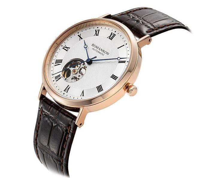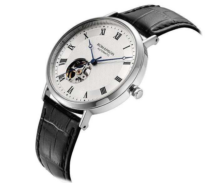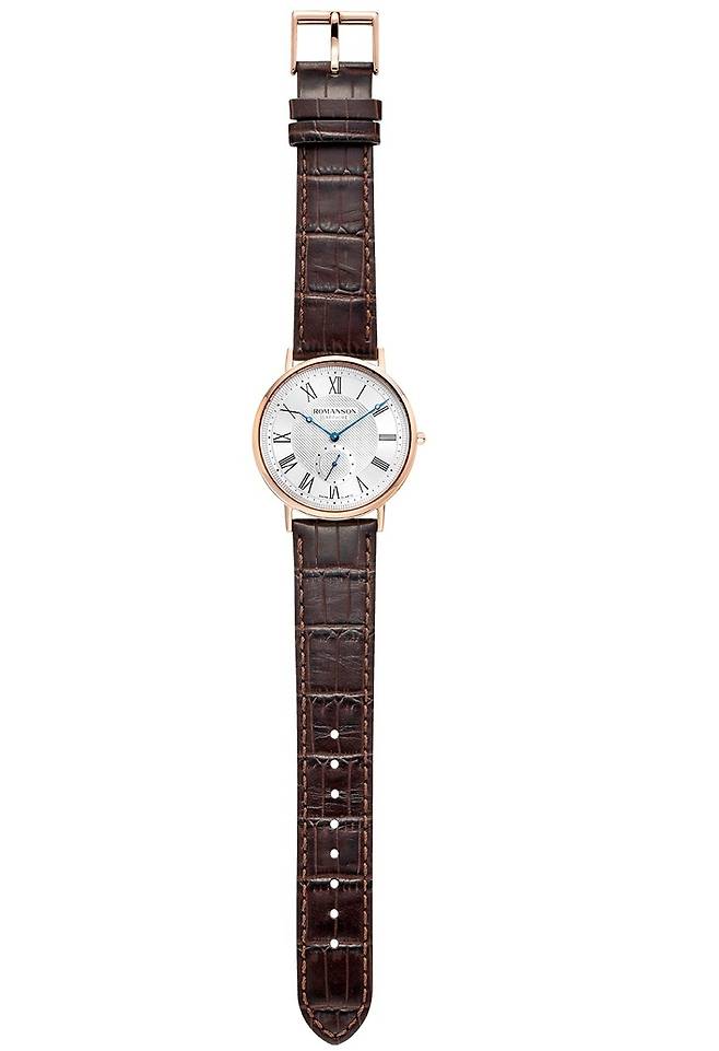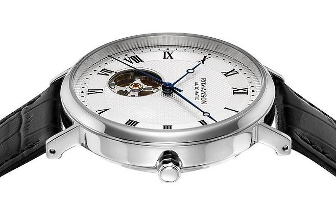 일명 로레게 스타일의 로만손 클래식 워치 시리즈는 시와 분을 표시하는 베이직 라인과 시분초를 표시하는 스몰 세컨 라인으로 먼저 출시되었고, 올해 최초로 기계식 무브먼트를 탑재한 오토매틱 라인과 최근에는 크로노그래프 라인이 새롭게 추가되었습니다. 우선 스테디셀러인 베이직과 스몰 세컨 라인을 살펴보면, 라운드 케이스에 직선형 러그가 어우러진 간결한 실루엣과 슬림한 두께가 인상적입니다. 여기에 다이얼 중앙은 작은 피라미드 형태의 클루 드 파리(Clous de Paris) 혹은 홉네일(Hobnail, 징) 패턴을 스탬핑 기요셰 장식하고, 동심원 패턴 마감한 아워 트랙과 챕터링에는 얇은 로만 인덱스를 더해 매우 클래식한 모습을 띠고 있습니다. 공통적으로 '브레게 핸즈'로 불리는 블루 스틸 오픈-팁 핸즈를 적용해 고전적인 인상을 강조하고, 로만손 영문 브랜드 로고 및 사파이어, 스위스 쿼츠 정도를 제외하면 프린트도 최소화해 한층 깔끔하고 세련된 느낌을 선사합니다.