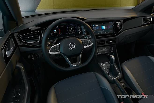 휠 아치 플라스틱 클래딩, 두꺼운 C필러 등으로 SUV 특유의 투박한 이미지를 연출했다. 리어램프는 좌우가 연결된 형태다. 티아고의 트렁크 기본 용량은 415ℓ로 플랫폼을 공유하는 폴로보다 130ℓ 이상 넓다. 실내에는 디지털 계기판과 10.1인치 디스플레이가 적용됐다.