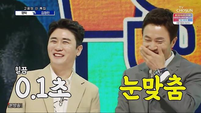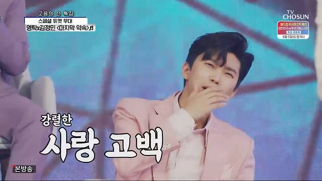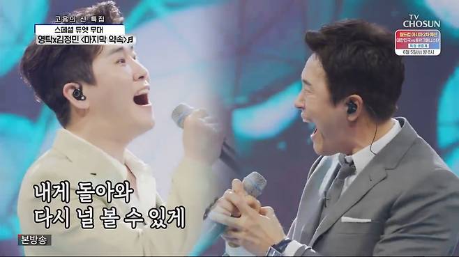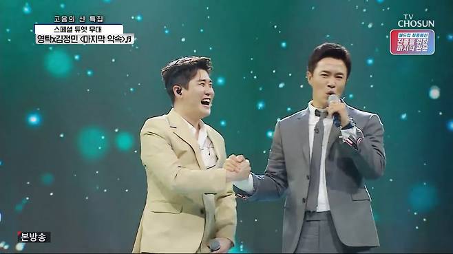 [TV리포트=김은정 기자] 서로 팬심을 드러낸 영탁과 김정민이 환상 케미를 선보였다.